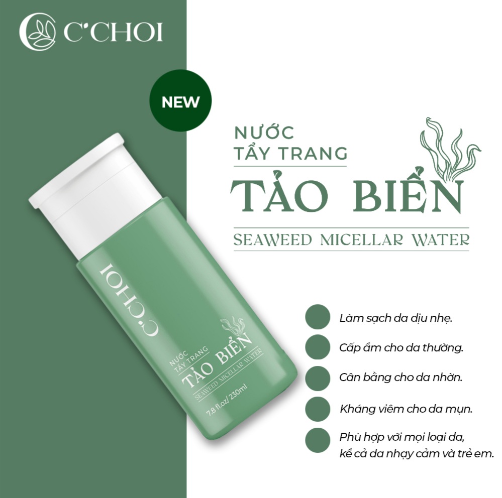 ● Nước Tẩy Trang Tảo Biển - Seaweed Micellar Water là bước đầu tiên thuộc bộ sản phẩm làm sạch của Mỹ phẩm xanh C'Choi, được khuyên dùng kèm với Sữa Rửa Mặt Bọt Khoáng.