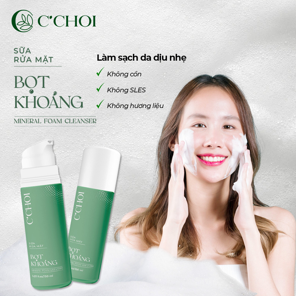 💎 Sữa Rửa Mặt Bọt Khoáng – Mineral Foam Cleanser của Mỹ phẩm xanh C’Choi giới thiệu giải pháp làm sạch da nhẹ nhàng trên tinh thần thư giãn. Cho bạn cảm giác chạm nhẹ và trượt những hạt bọt siêu mịn trên da như một cách làm dịu và loại bỏ bụi bẩn giúp da luôn thông thoáng vào cuối ngày.