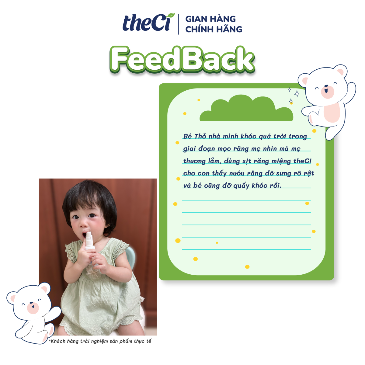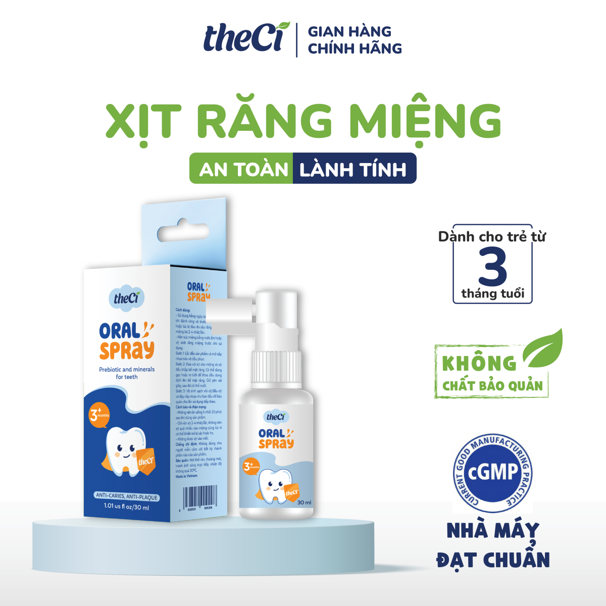 Xịt Răng Miệng Chống Sâu Răng Dành Cho Bé theCi 30ml giúp làm sạch mảng bám ố vàng, bảo vệ men răng an toàn nuốt được cho trẻ từ 03 tháng tuổi và bé mọc răng trở lên. Đảm bảo an toàn được nghiên cứu và sản xuất theo công nghệ dành riêng cho mẹ và bé sẽ là người bạn đồng hành cùng bé mang đến nụ cười sạch khỏe.