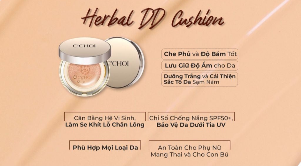 💎 Phấn Nước C'Choi Herbal DD Cushion là phấn nước trang điểm của thương hiệu Mỹ phẩm xanh C’Choi. Có khả năng che phủ và bám tốt, tạo lớp trang điểm tự nhiên, mỏng nhẹ không gây khó chịu cho da. Chỉ số chống nắng SPF lên đến 50 và PA+++ giúp làn da tránh các tác hại từ tia UV.