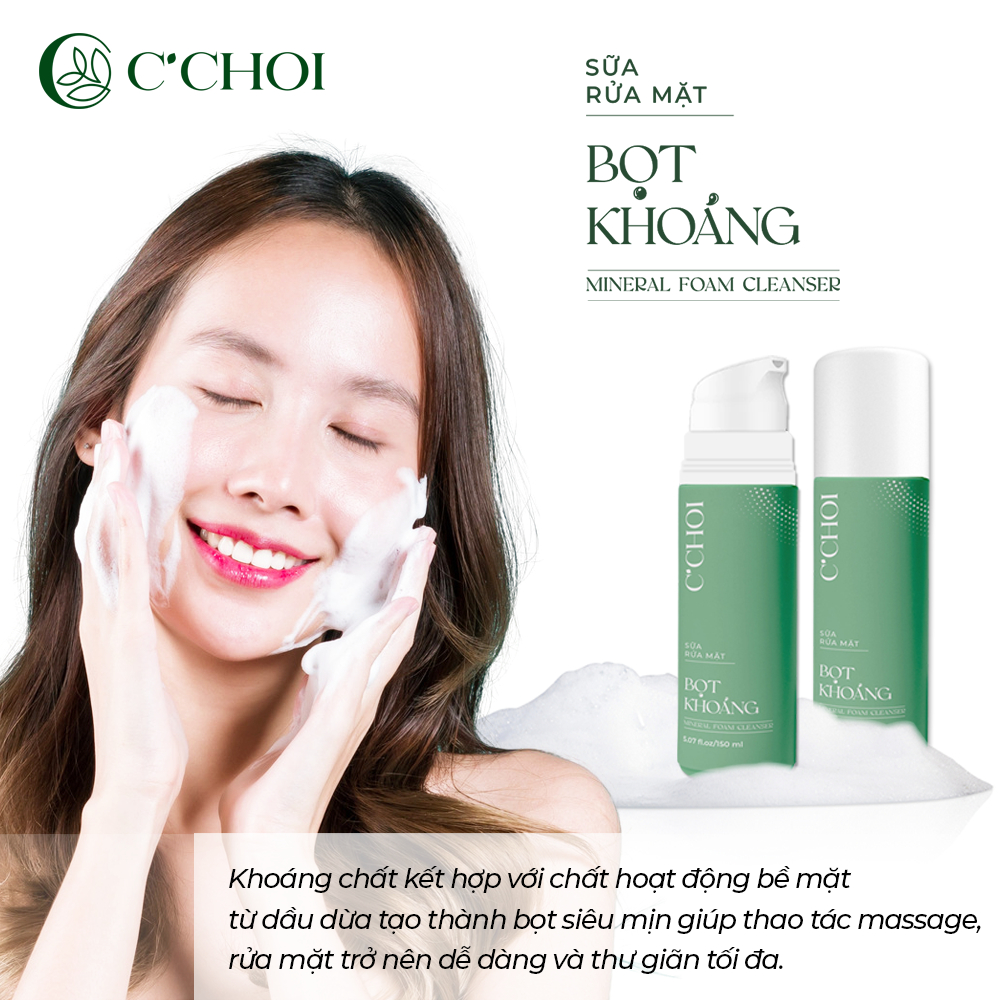 💎 Sữa Rửa Mặt Bọt Khoáng – Mineral Foam Cleanser của Mỹ phẩm xanh C’Choi giới thiệu giải pháp làm sạch da nhẹ nhàng trên tinh thần thư giãn. Cho bạn cảm giác chạm nhẹ và trượt những hạt bọt siêu mịn trên da như một cách làm dịu và loại bỏ bụi bẩn giúp da luôn thông thoáng vào cuối ngày.
